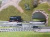 Nachtfahrt, Zug kommt aus dem Tunnel.